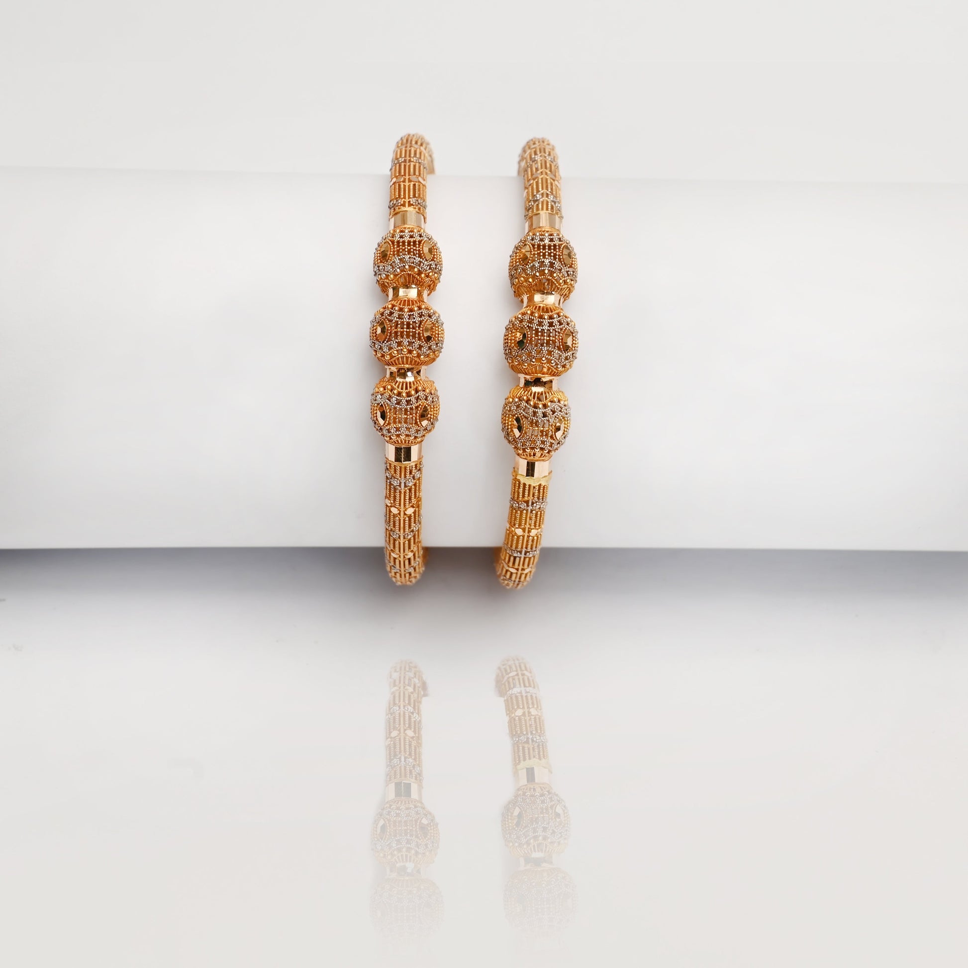 Crafted with precision, this gold kangan exemplifies timeless elegance and expert craftsmanship. Its smooth finish and classic design make it a versatile accessory for both traditional and contemporary attire. Durable and radiant, it offers lasting beauty and adds a refined touch to any ensemble. Ideal for daily wear or special occasions, this kangan balances style with sophistication.