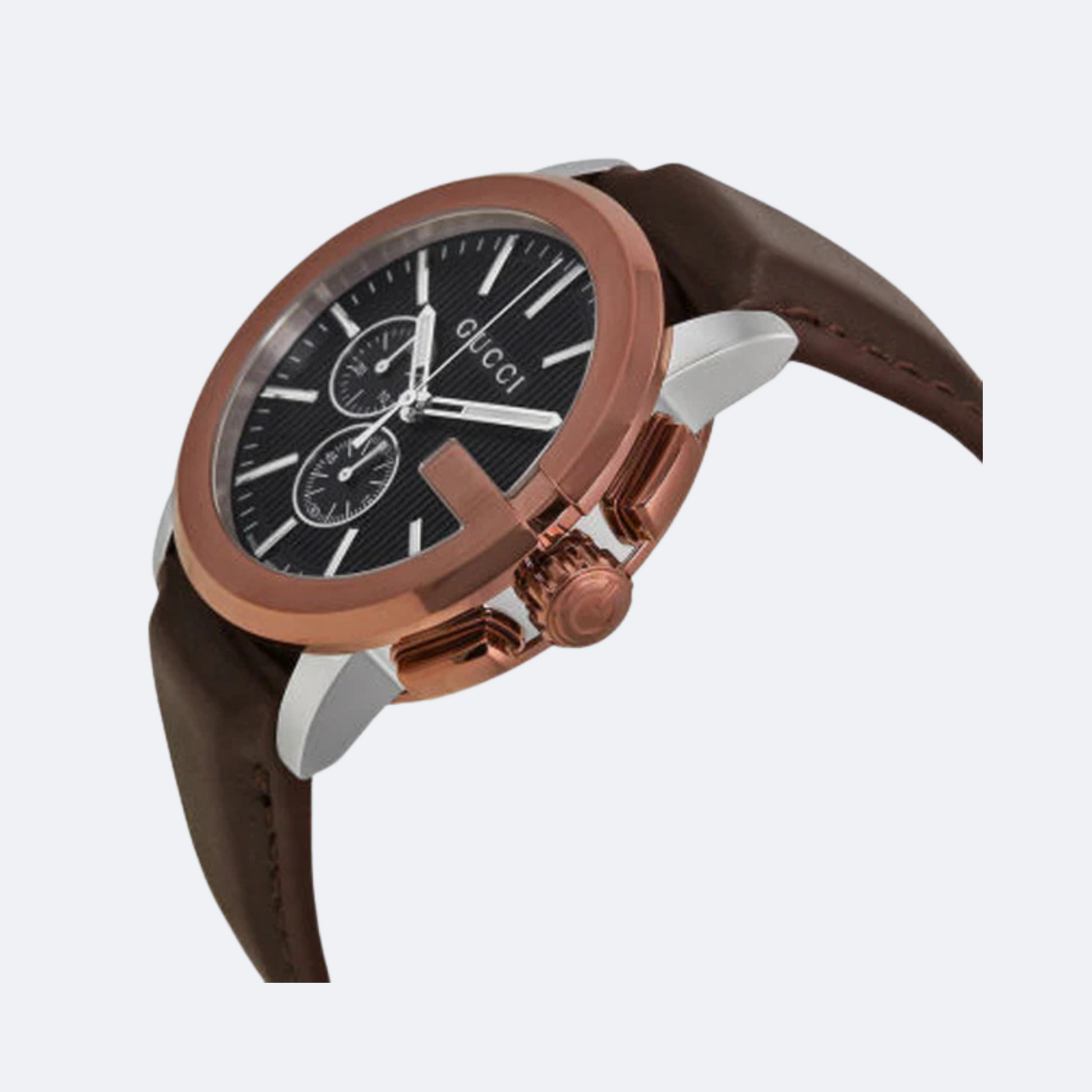 Gucci GChrono Brown Leather Black Dial Chronograph Quartz Gents Watch YA101202 - 100% Authentic with Official Warranty & Free Shipping Across Pakistan.